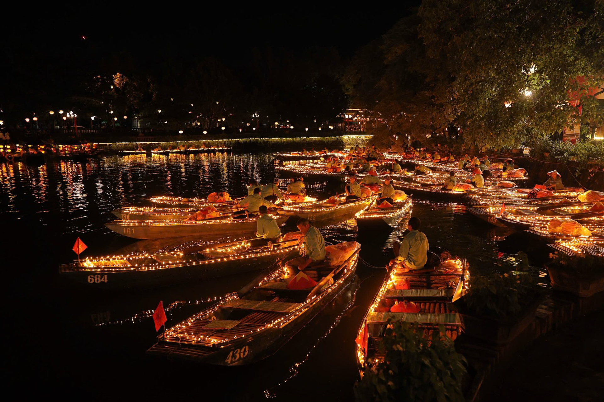 A boat trip in Hoa Lu Ancient Town is a must-try activity in Tam Coc at night